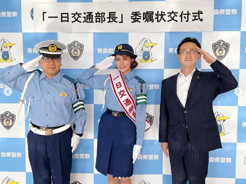 「今年は交通部長と去年よりも偉くなりました 去年かな、ポスターができた時、実物よりも大きいサイズでプリントされてる自分の顔に少し照れを感じたんだけど、そんなもんじゃおさまりませんでした とうとうバスになりました」と報告し、16日に青森県警察本部の一日交通部長に就任した時の写真や、王林がラッピングされたバスの写真をアップ。昨年の交通機動隊長から“昇進”し「横断歩行は歩行者優先!マナーじゃないよ!ルールだよ!歩行者も運転手も思いやりを持って街に繰り出ましょう」などとつづった。
