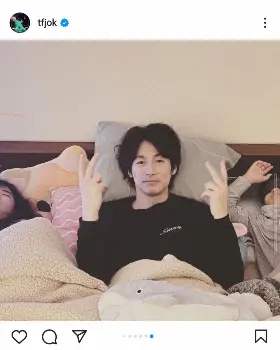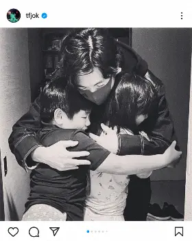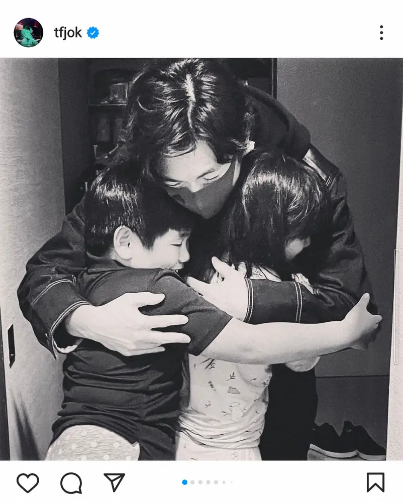 男女の双子と次男の3児の父であるディーンは、「Happy birthday my twin angels(私の双子の天使、お誕生日おめでとう)」と記すと、マスクをした自身が2人の子供を抱きしめているモノクロのショットをアップ。仲の良さそうな子供2人のショットや、寝室で2人が寝ている中央で自身がスウェット姿でピースサインをするショットなども投稿した。