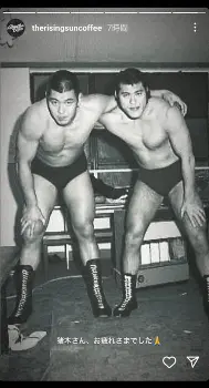 坂口は自身が立ち上げたコーヒーブランド「therisingsuncoffee」の公式インスタグラムのストーリーズに、猪木さんと元プロレスラーの父・坂口征二氏の若き日のショットを投稿。モノクロ画像の中の2人は肩を組んでキリリとした表情を見せており、坂口は「猪木さん、おつかれさまでした」と手を合わせる絵文字とともに悼んだ。