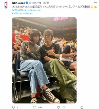 窪田正孝&水川あさみ 夫婦でNBA観戦 貴重な2ショットに「微笑ましい」「かっこいい夫婦」の声