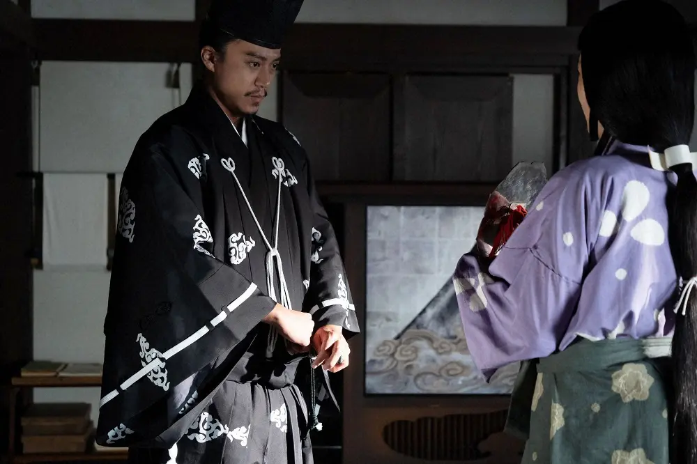 大河ドラマ「鎌倉殿の13人」第38話。互いにはなむけを送る北条義時(小栗旬)とりく(宮沢りえ)(C)NHK