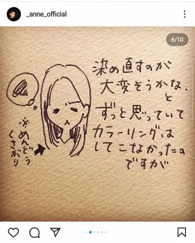 杏はインスタグラムで自身のイラストを付けて「初!!のカラーリングをしてみました」と報告。渡仏直前にイメージチェンジをしたとし、「やってみると新しい&知らなかったことがいくつもありました。服も印象がガラリと変わる」と報告している。