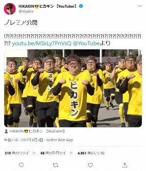 ヒカキンは今年の夏の“大型企画”として8月7日に「チャンネル登録者数合計6300万人以上、オールスター参戦!」と掲げ、トップユーチューバーたちが参戦した“鬼ごっこ”動画を配信。ルールは「ヒカキンのマスクを被った『オニキン』軍団から逃げ切れたら100万円!」というものだ。富士急ハイランドを貸し切って開催された。