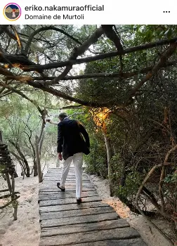 「9月のある日、友人の結婚式に参列。会場はコルシカの南にある@domainedemurtoli」とコルシカ島のホテル Domaine De Murtoli(サルテーヌ)での友人の結婚式に参列したことを報告。「Figariの空港に着いたら、真っ青な空に信じられないくらいにくっきりとした雲が浮かんでいて…それだけで幸せな気分になる」と美しい青空の写真をアップ。「Domaine de Murtoliはおよそ2500ヘクタールの大自然の中にホテルがあります。宿泊施設のお部屋の他に21のBergeries(羊小屋)があり、私たちは2人宿泊可能な小さな羊小屋へ 実際に使われていた小屋なので、あちらこちらに点在しています。2人用から15人くらい宿泊できる大きなものまで、色々。プールも素敵でしょう?」と名門ホテルを案内した。