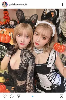 吉川ちえインスタグラム(yoshikawachie_16)から 整形双子モデル・吉川ちえ&ちか メイド&バニーガールのハロウィーンコ… ギャラリーで見る この記事のフォト 2022年10月06日の画像一覧 もっと見る 2022年10月06日の画像をもっと見る