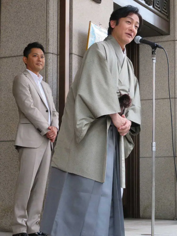 今井は「東京に住んでいますが、東京の次に多くいる大阪。ぜひこの新作歌舞伎を見て、ここでおなかがすいたら(近くのうどん店)『道頓堀今井』で翼セット(親子丼と小さいきつねうどん)をお召し上がりくださいませ」と名店のアピールもまじえ笑いを誘った。