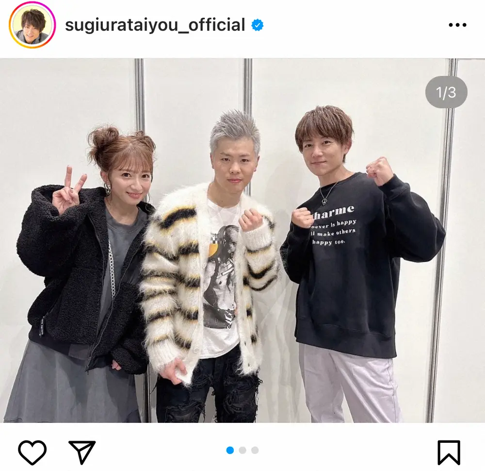杉浦は「昨夜のガールズアワードにて、ゲストMCだった那須川天心くんに挨拶しに行きました 3人ショット」とつづり、妻でタレントの辻希美と、那須川との写真をアップ。