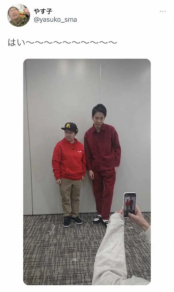 どっちがどっち?やす子(左)と山内健司のツーショット(やす子のツイッター@yasuko_smaより) やす子 衝撃ツーショット写真が大反響「似すぎ」「やばい!」「キングオ… ギャラリーで見る この記事のフォト 2022年10月11日の画像一覧 もっと見る 2022年10月11日の画像をもっと見る