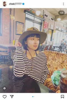 沖縄を訪れている千秋は、アメリカンビレッジでの写真を投稿。「海に潜る前なので眉毛もない超すっぴん+絶対焼けない日焼け止め『ホワイトゴリラ』で顔が真っ白」という姿を披露。