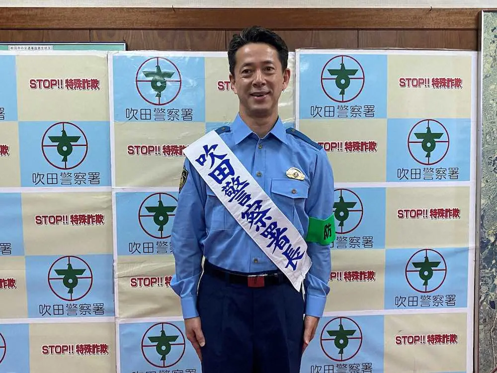 吉本新喜劇の西川忠志、吹田署「1日署長」特殊詐欺被害防止を訴える
