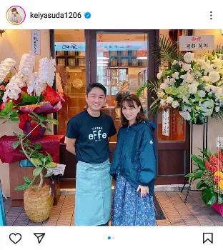 保田圭 夫でイケメンイタリア料理研究家の小崎陽一氏との2ショット披露 小崎氏がチーズケーキ店オープン