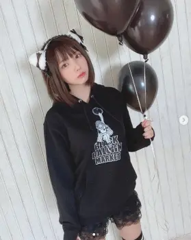 「黒パーカーもかわいいよね」とつづり、黒のパーカー、レースパンツ、カチューシャ姿で風船を手にしている写真をアップした。