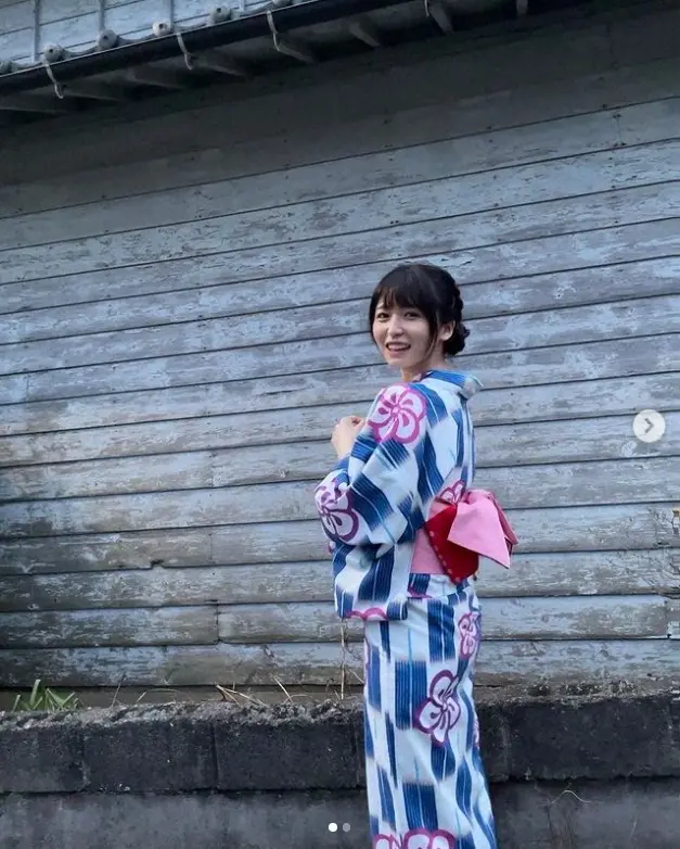 「さくらは浴衣で参加でした」とつづり、浴衣姿で振り返って笑顔を見せている写真をアップ。ハッシュタグで「舞いあがれ!」と添えた。