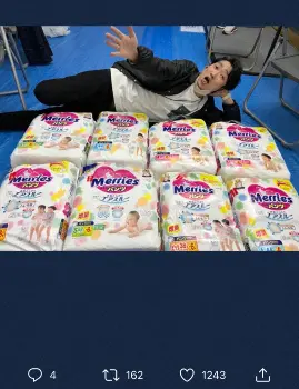 ツイッターでは、自ら場内を歩いて撮影したテントまでの案内動画と合わせ、「コーン置いてるところにベビーカー置いてください。授乳とかおむつ替えは最後のとこのテントで出来ます。今はテントひとつですけど明日からはもう一個テントでますのでご安心を。オムツ買っときましたんでご自由にお使いください」と投稿。サイズ違いのおむつがズラリと並んだ画像もアップした。