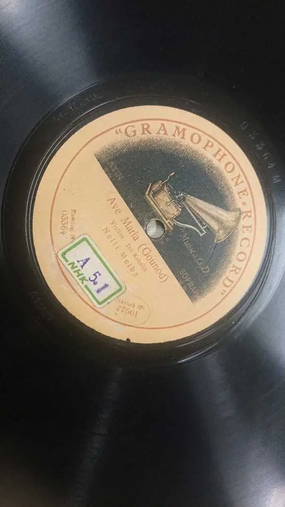 NHKアーカイブスに保管されている、1913年に録音されたソプラノ歌手ネリー・メルバのSP盤