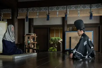 大河ドラマ「鎌倉殿の13人」第40話。「1人で勝手なことをしない!」と北条義時(小栗旬)を叱りつける政子(小池栄子)(C)NHK