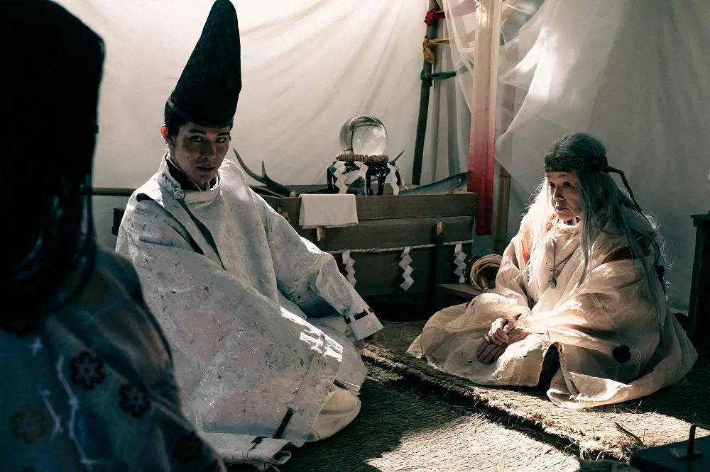 大河ドラマ「鎌倉殿の13人」第40話。再び不吉な予言をする歩き巫女(大竹しのぶ)(C)NHK