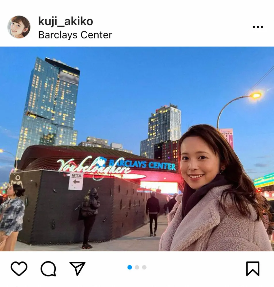 はじまりました #barclayscenter #brooklynnets」とNBAの今季のシーズンがスタートしたことを報告し、ネッツの本拠地、バークレイズ・センターの前で撮影した自身のショットを披露した。