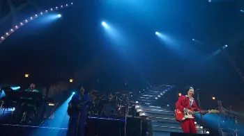 ステージには、喉頭癌の治療専念のために約半年間休養するパーカッションの林“VOH”紀勝の等身大パネルを設置。過去のライブデータから林の声や演奏音源を集めバンド演奏と同期させるスタイルを採用し、随所で林の映像も映し出される演出に、メンバーやツアースタッフの「思い」が伝わった。