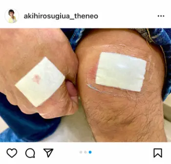 「痛く長い夜を耐えて、火曜朝に病院に電話したら…担当の先生がその日複数オペが入ってて即対応が難しいと でもお昼に先生から連絡くださり、水曜アサイチに診察してくださる事に!ありがとう先生!!!助かったー ただ…。自宅にあった僅かなキシロカインうがい薬も火曜の朝食で終了 なので僕、昨日はご飯どころか水飲むのも信じられない様な激痛地獄で、モルヒネ系鎮痛剤も一日に許されてる量をすぐ服用してしまい、言うなれば昨日が痛み度数10MAXの最悪日でした」と杉田。「今朝。痛みは増していき、安定剤や睡眠導入剤も太刀打ち出来ずにほぼ寝れずで そのせーなのか通院途中の道、てかマンション近くで慌てて歩いたら転んで軽く怪我…ハズ過ぎます でも無事病院着いて診療してもらえて、先生のご厚意で点滴までしていただけて 薬も受け取れて、点滴効果で元気になれたのか転ばないで帰宅なうです」と壮絶な週末を振り返った。