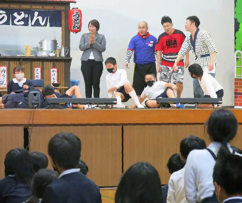 同小もここ2年はコロナ禍で多くのイベントが縮小、中止が相次いだ。関西のお笑いパワーで児童は終始笑いっぱなし。浦西校長は「運動会もコンパクトにしたり、遠足も修学旅行も近くに。皆が体育館に集まったのはホントに久しぶりです。新喜劇の方から笑いのパワーをいただきました。子どもたちも肩を組んで笑ってましたね」と目を細めていた。