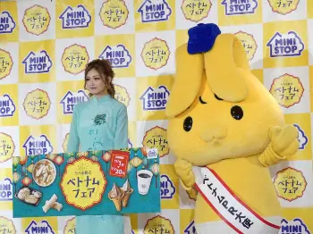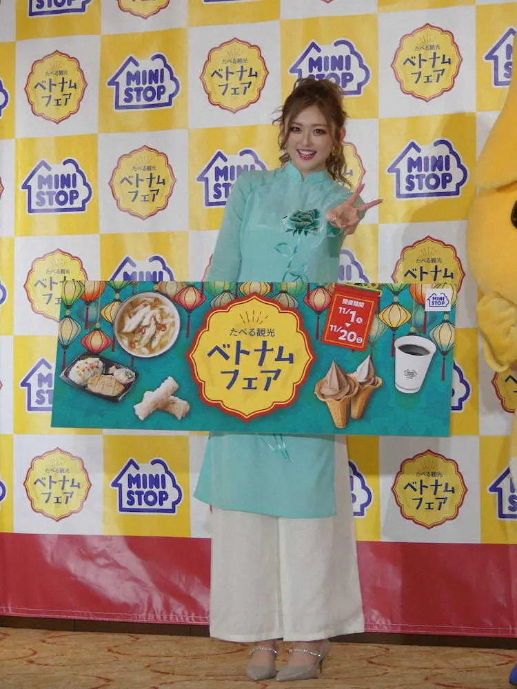 ベトナムの民族衣装のアオザイ姿で登場。薄緑色のさわやかな衣装で「めちゃくちゃかわいくて、テンションぶち上がってます」と笑顔。自身は「毎日5回くらいコンビニに行きます」といい、「朝はサラダ、お昼にご飯、アイスを買いに行ったり」と明かした。特にミニストップは「アイスが大好きで、ソフトクリームがめちゃめちゃおいしいんですよ。2日に1回くらい食べてます。ギャルは甘いの好きなので」と笑顔でPR。新商品の「ベトナムカカオチョコソフト」についても「カカオがミニストップさんらしい。シンプルルイズベストでおいしい」とアピールした。