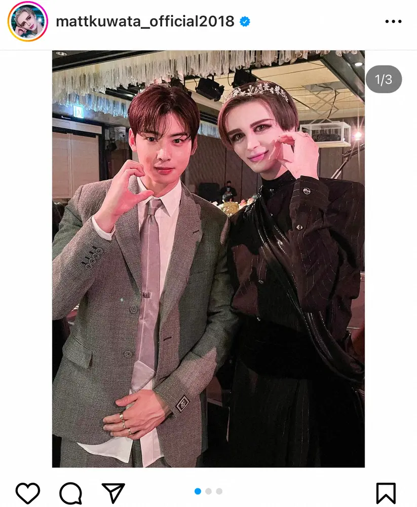 Matt公式インスタグラム(@mattkuwata_official2018)から Matt BTS・RMなど韓国トップスターとの2ショット公開 J-HOPE、チャウヌ…… ギャラリーで見る この記事のフォト 2022年10月30日の画像一覧 もっと見る 2022年10月30日の画像をもっと見る