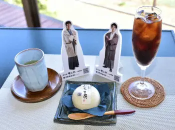 藤井は午前のおやつでアイスコーヒーとともに和菓子を味わった。会場となった静岡県富士宮市の「富士の菓子処 藤太郎」の和スイーツ。パンナコッタのようななめらかな舌触りが特徴の豆腐に黒蜜をかけて味わう「富士の湧水黒みつ豆腐」を注文した。