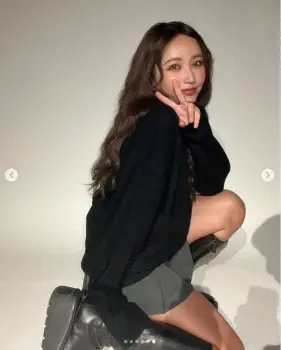 「オフショ メイクがいつもと違う感じ、スモーキー」とつづり、普段と異なるメイクでのミニスカート姿の写真をアップした。