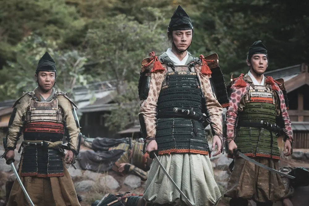 大河ドラマ「鎌倉殿の13人」第41話。和田義盛の軍勢を退ける(左から)平盛綱(きづき)北条泰時(坂口健太郎)北条朝時(西本たける)(C)NHK