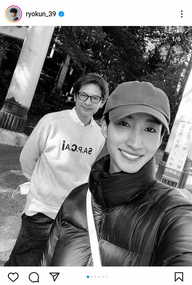 りょうは、父の直人と一緒に写るモノクロの写真を投稿。「今日は朝、早起きして父と2人で埼玉にある三峯神社に行って参りました 着いて、車から出た瞬間に感じる綺麗な空気が最高だった、パワーも沢山頂けました。とても立派なご神木もあって両手で触れたら蜘蛛がちょうどいたらしく手で押さえてしまってそれに気づいて少し驚き叫んでしまったのはお恥ずかしい話でした。(周りに誰もいなくてよかった)3時間くらいかけて行ったのですが、一緒に行ってくれた父にも感謝ですが、三峯神社に来て手を合わせて良かった」とつづった。