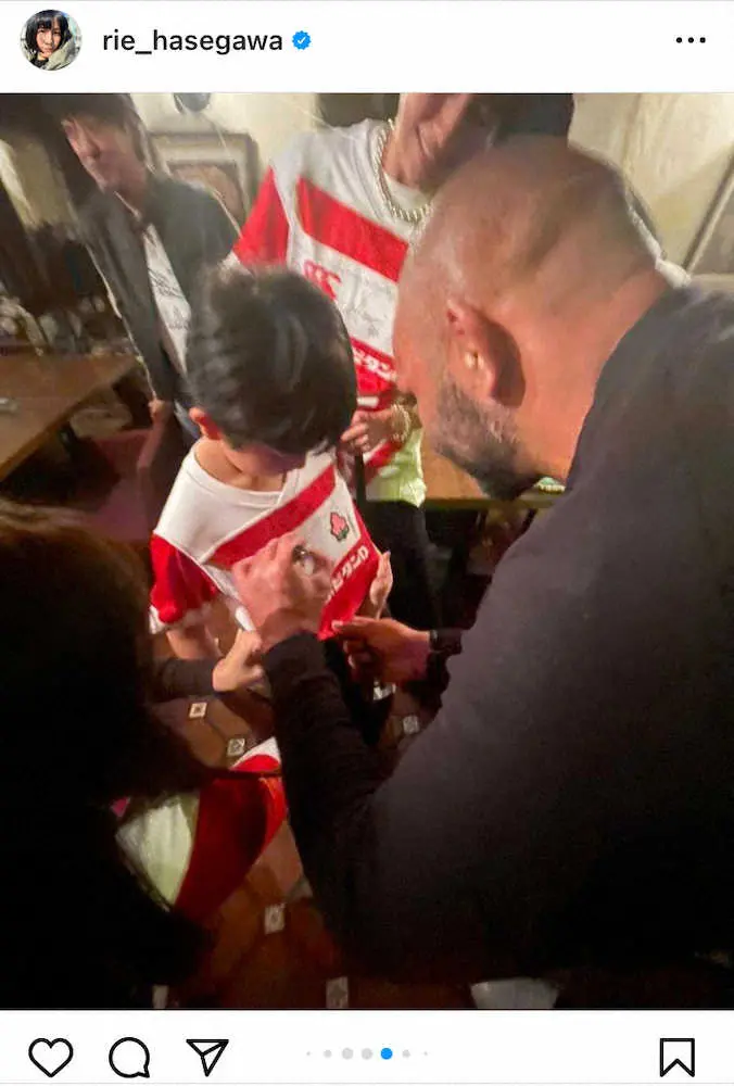長谷川は兄や親せきがラグビーをしていたことで、リーチ・マイケル選手との縁があり、今回の誕生会に顔を出した模様。同時に掲載された写真には、リーチ・マイケル選手が目の前に座っているものや代表ジャージーにサインをする姿などが映っており、まさに最高のプレゼントになったようだ。
