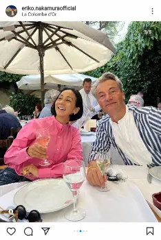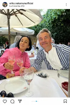 「秋休みのスタートは、夫とお揃いの靴で南仏に向かいました!勿論、ピュイックとONEKOも一緒に」とペットと共に家族で別宅のある南仏に滞在。「そして、秋休み2週目は夫と息子は南仏、次女と私はパリという組み合わせで別々に過ごすことに 次女が水泳のStageがあるので 別々になる前、私達がニース空港へ向かう前に大好きな@lacolombedor.fr でランチをしました」と自身はピンクのブラウスにデニム、夫はストライプシャツでのレストランでの2ショットをアップした。「記念撮影で、普通にしていると50代の私達は何だか疲れて見えるから ほら!目を意識して大きく開けよう!って…」「2人で目を大きくしてみました」とのショットも投稿した。
