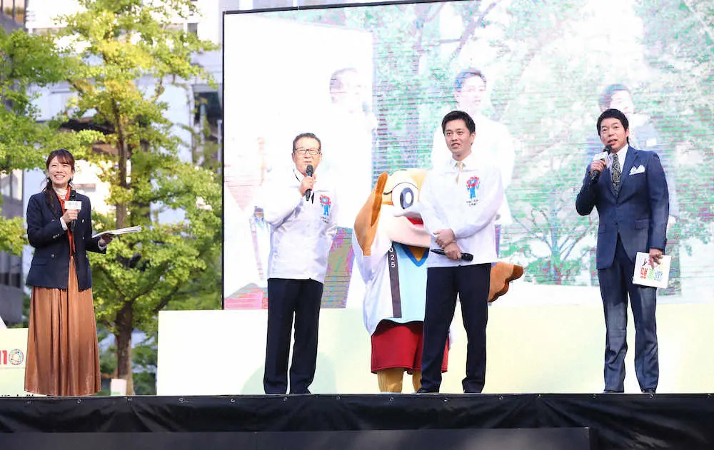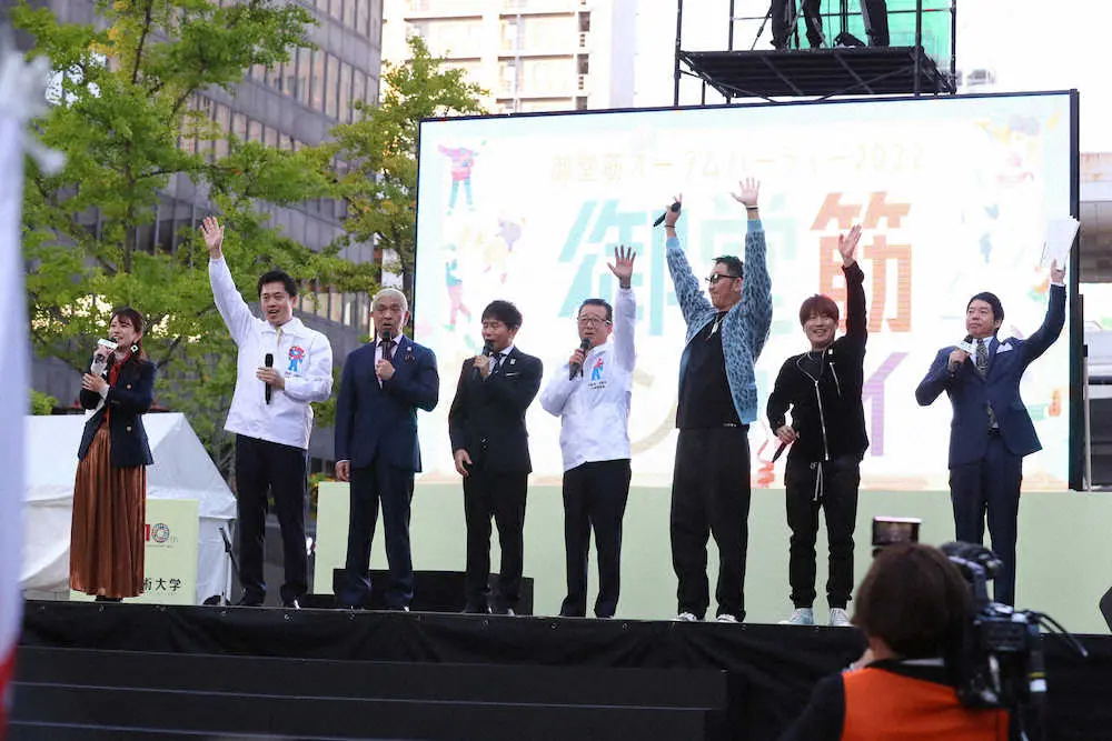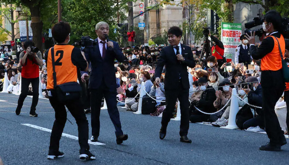 【画像・写真】ダウンタウンが4年ぶりに御堂筋ランウェイ降臨!!オープンカーに乗りド派手登場、ミャクミャクいじりも