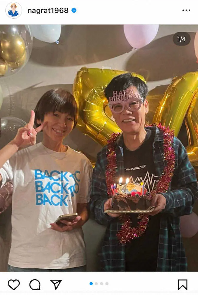 【画像・写真】名倉潤 54歳の誕生日ショットが幸せそうと話題「満里奈さんと仲良し夫婦」「こちらも笑顔になりました」