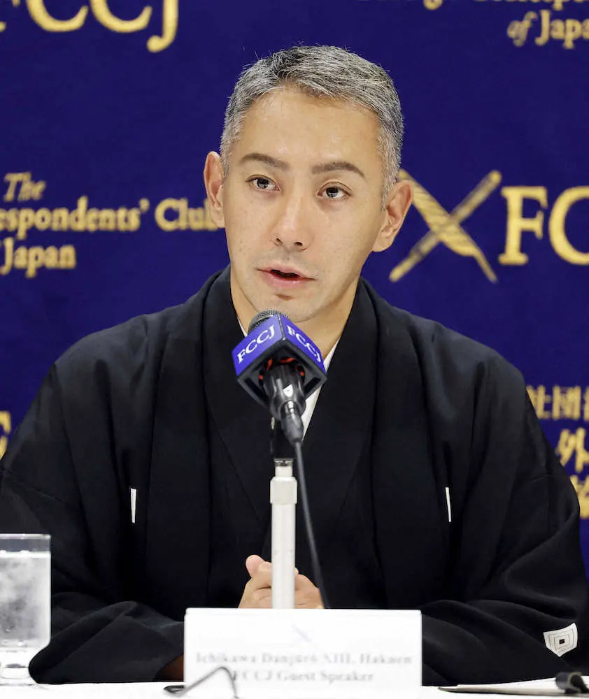 10月31日に襲名特別公演を行った歌舞伎俳優の十三代目市川團十郎白猿(44)が4日、東京・丸の内の日本外国特派員協会で記者会見を行った。