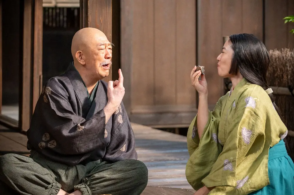 大河ドラマ「鎌倉殿の13人」第42話。尻に敷かれながらサツキ(磯山さやか)と仲睦まじい北条時政(坂東彌十郎)(C)NHK