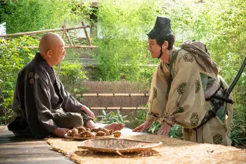 大河ドラマ「鎌倉殿の13人」第42話。源実朝の“夢の唐船”を引き、腰を痛める三善康信(小林隆・中央)(C)NHK