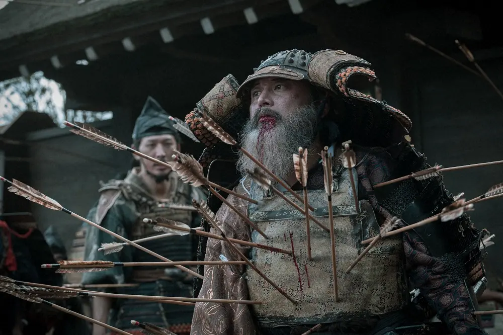 大河ドラマ「鎌倉殿の13人」第41話。無数の矢を全身に浴び、壮絶な最期を遂げる和田義盛(横田栄司・右)(C)NHK