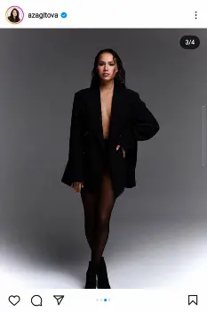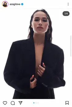 ザギトワはロシア語で「私じゃないみたい。でも私の性格の一面を表しています」とつづり、胸元が大胆に見える黒いジャケット姿を披露した。また、ショートブーツとストッキングで足も露わにした写真も投稿した。