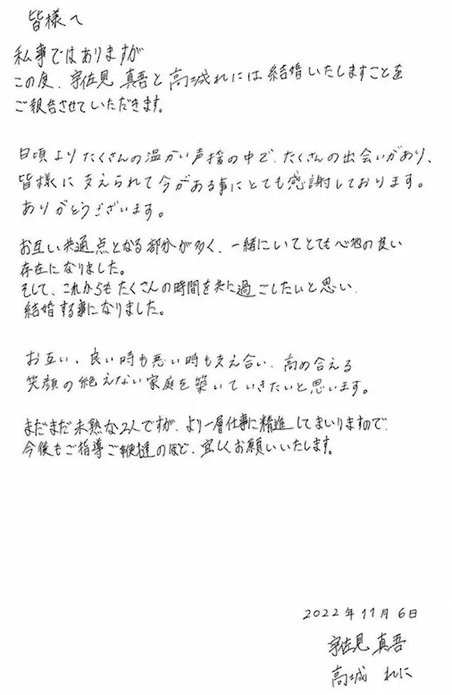 高城はこの日、YouTubeチャンネル「日曜生高城」で結婚を発表。インスタグラムにはツーショット写真とともにコメントを寄せ、「お互い、良い時も悪い時も支え合い、高め合える笑顔の絶えない家庭を築いていきたいと思います」と誓いを記した。