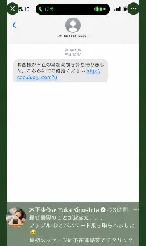 「最低最悪のことが起きた、、、アップルIDとパスワード乗っ取られました」と報告。「最初メッセージに不在連絡来ててクリックしたら次の画面になって何にも考えずにIDとパスワード入れてしまって即行パスワード変更されて使えなくなってしまった...慌ててアップルの人に対応してもらって買い物とかはできない」と現状を説明した。