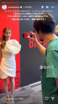 明日花は、3日の「BreakingDown6」でゲストコメンテーターとして登場。しかし、合間でトラブルがあったという。明日花は、会場でインタビューに答える動画を投稿し「ブレイキングダウンの公式です。インタビュー良いですかって言われたから時間ない中答えたのに この人全然公式じゃないし勝手に動画使われてた」とつづった。
