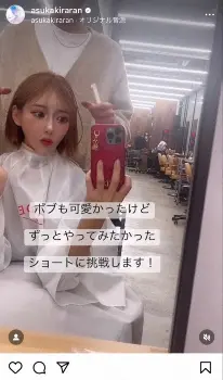 「人生初のショートヘアに挑戦しました」と髪型をボブからショートに。ビフォーアフター動画も添付し「ボブもかわいかったけどずっとやってみたかったショートに挑戦」「どこから見てもかわいい髪型」「カラーは少女漫画ベージュ」と紹介した。