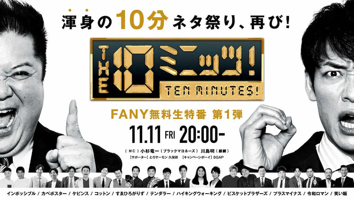 吉本興業が9日、FANY Online Ticketで11日に無料配信する特番「THE 10ミニッツ!~渾身の10分ネタ祭り、再び!~」の特別編をNTTドコモが運営するdTVで配信することが決定したと発表した。