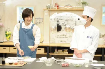 いままで料理にほとんど触れてこなかったDAIGOさん。初回収録で、先生にじゃがいもの皮をピーラーでむくように指示され、緊張した手つきで「…ショリ…」と、ひとむき。そして満面の笑みで「先生!どうですか!?」と聞くと、先生も「完璧です!」と褒める…。かと思えば、砂糖を小さじ2/3計るよう言われ、ありえないような時間をかけてめちゃくちゃきちんと2/3計ろうとする。そして、「どうですか!?」「バッチリです!」のやりとり…。