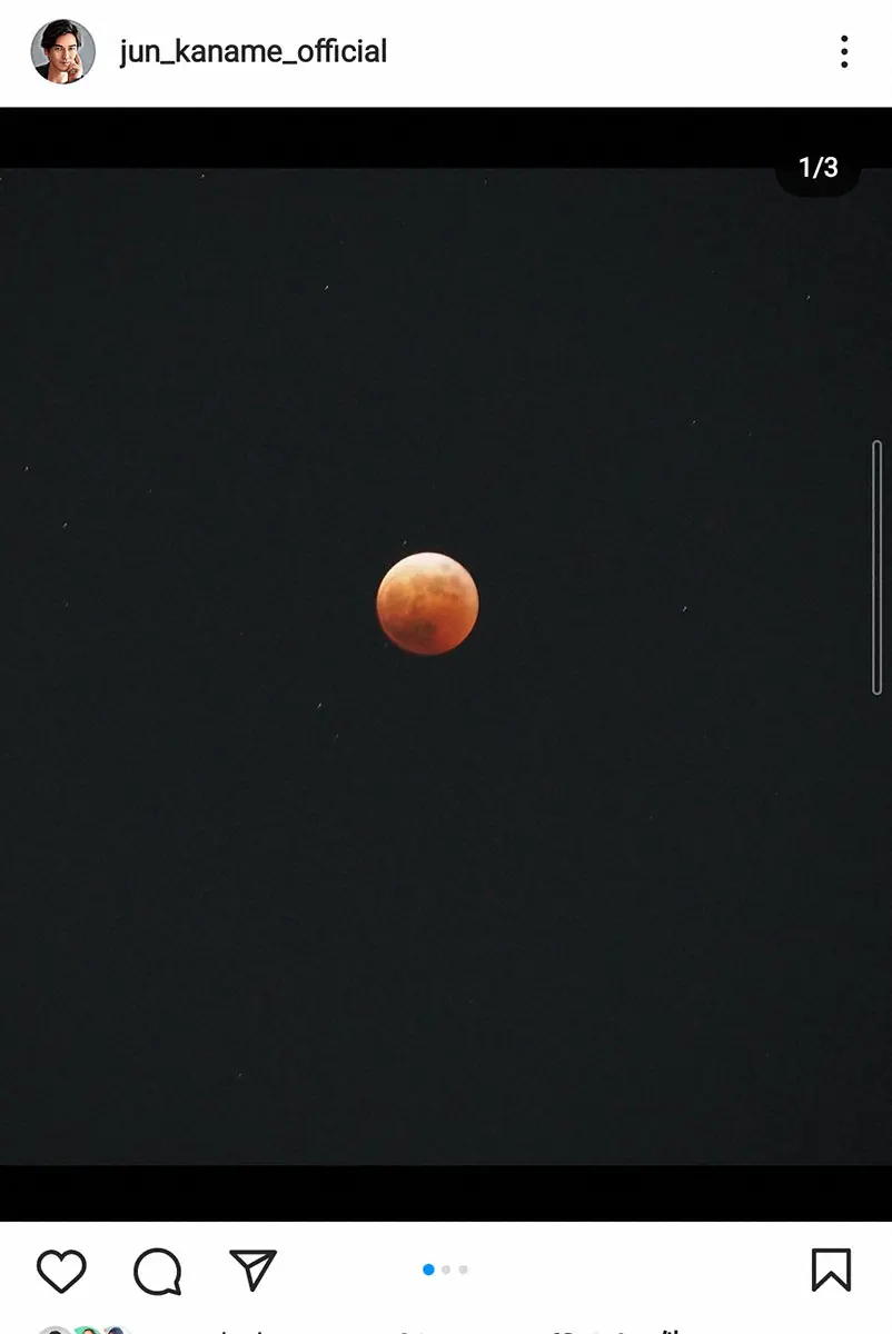 俳優の要潤(41)が10日までに自身のインスタグラムを更新。8日にあった皆既月食中の月の写真を投稿し「謎の飛行物体」が写っていることを報告した。