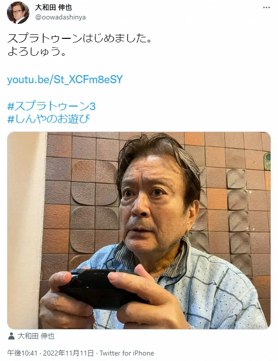 コントローラーを片手に、なぜかおびえた表情の自身の画像をアップし、「スプラトゥーンはじめました。よろしゅう」と投稿。自身のYouTubeチャンネル「大和田伸也の隠れ家」でゲーム実況の動画を公開した。