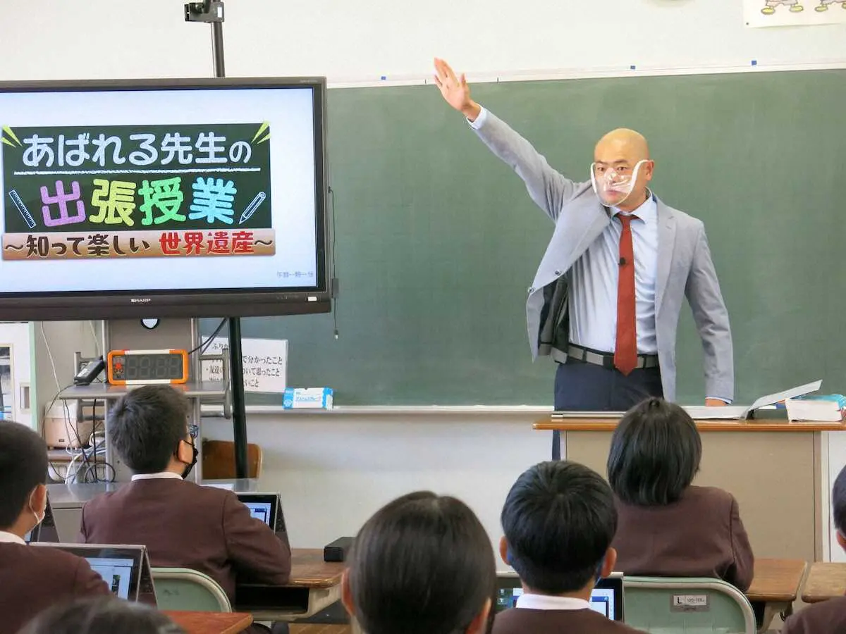 今回はスピンオフ企画として、中学・高校の社会科教員免許を持つ“あばれる先生”がサプライズで教室に登場。テレビ東京系「おはスタ」(月~金曜前7・05)、「ポケモンとどこいく!?」(日曜前8・00)などでお茶の間の子どもたちの人気者であるあばれる君は拍手と歓声に包まれ、ご機嫌だ。