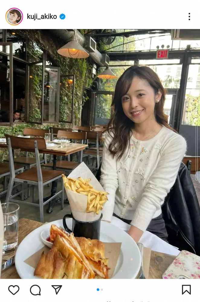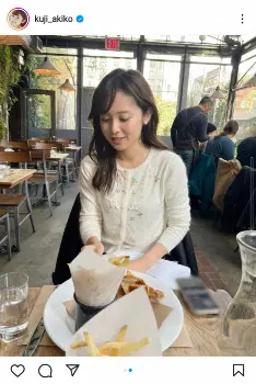 元フジテレビアナウンサーでタレントの久慈暁子(28)が19日、自身のインスタグラムを更新。結婚生活を送る米ニューヨークでランチを楽しむ姿を披露した。